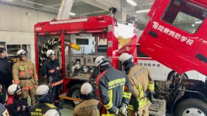 福岡県消防学校で行われました「令和7年度 消防職員特別教育 第19回警防実務研修」の一環でポンプ講習を行いました。